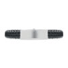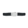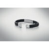 Braided faux leather cuff bracelet with polished steel hardware. Push-lock clasp. Wrist circumference: 21 cm.