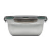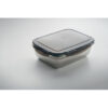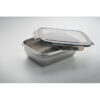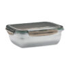 Recycled stainless steel lunch box with PP lid and 4 side clasp closure. Including separator. Capacity: 1500 ml.